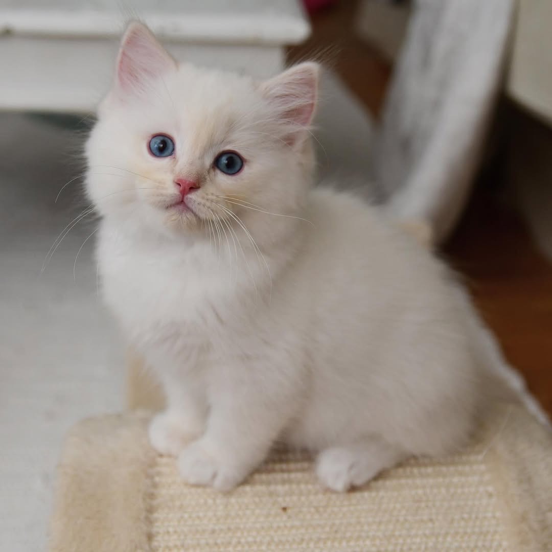 Each kitten is examined regularly by a licensed veterinarian, kept up to date on vaccinations, and comes from carefully selected, healthy bloodlines. Their soft coats, striking blue eyes, and naturally sweet nature make them a beautiful and loving addition to any household.
